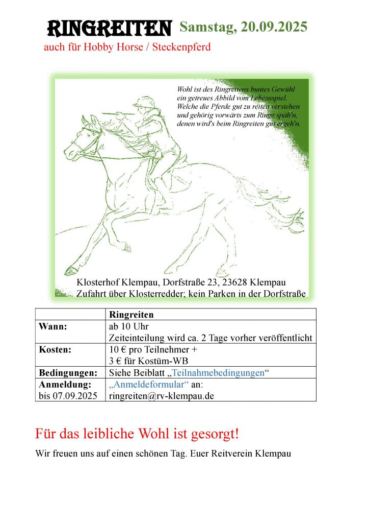 Am 20.09.2025 findet unser diesjähriges Ringreiten statt.
